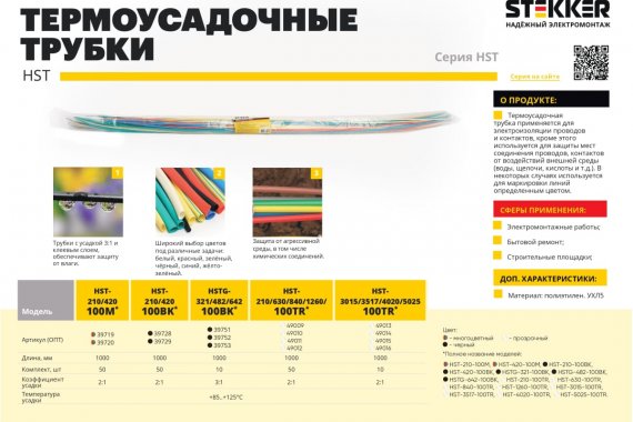Технические характеристики STEKKER hst-5025-100tr, длина 100 см., коэф. усадки 2:1 прозрачный 49016