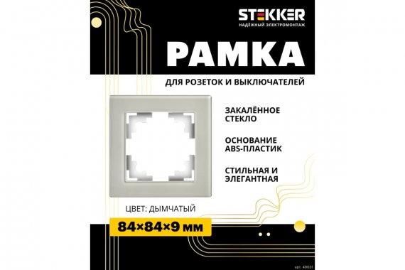 Рамка STEKKER GFR00-7001-07 на гнездо, , . Материал: Закаленное стекло/ABS пластик, цвет дымчатый, размер 84*84*9мм. Номинальное напряжение , номинальный ток , диапазон рабочих температур ,