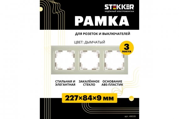 Рамка STEKKER GFR00-7003-07 на гнездо, , . Материал: Закаленное стекло/ABS пластик, цвет дымчатый, размер 227*84*9мм. Номинальное напряжение , номинальный ток , диапазон рабочих температур ,
