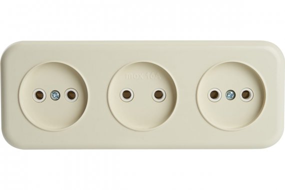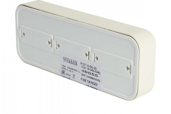 Розетка STEKKER PST16-50-20 на 3 гнездо, без заземления. Материал: ABS пластик, цвет слоновая кость, размер 160*60*32,5мм. Номинальное напряжение 250, номинальный ток 16А, диапазон рабочих температур 0..+35°C, IP20