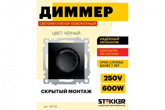 Выключатель диммирующий STEKKER PSW10-9106-03 , серия Эрна тип установки - скрытый, размер изделия 55*55*50мм., цвет черный, материал изделия PP пластик/ABS пластик, латунь. Номинальное напряжение 250 , номинальный ток 2,4A, IP20