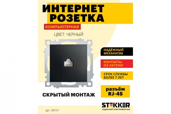 Розетка STEKKER PST00-9107-03 на 1 гнездо, -. Материал: PP пластик/ABS пластик, латунь, цвет черный, размер 55*55*35мм. Номинальное напряжение -, номинальный ток 1A, диапазон рабочих температур 0..+35°C, IP20