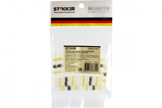 Технические характеристики STEKKER с припоем 4-6 мм 48a, прозрачный/желтый 49162