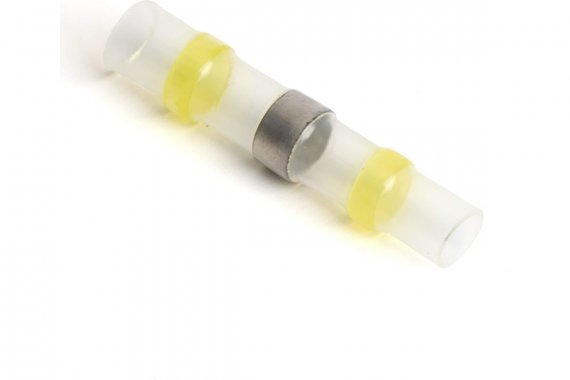 Термоусаживаемые гильзы с припоем используются для соединения проводов. Соединение происходит при нагревании оловянного припоя в центре трубки строительным феном, кроме этого, сама прозрачная трубка усаживается при нагревании, а цветные кольца с термоклеем дополнительно фиксируют провод внутри трубки.