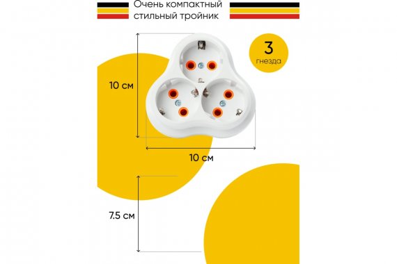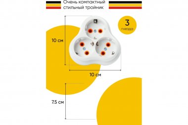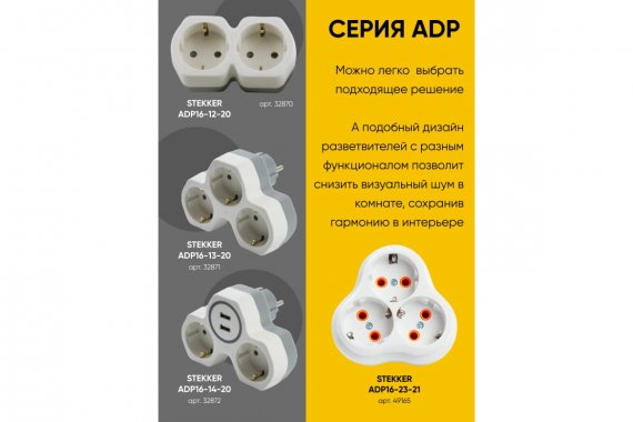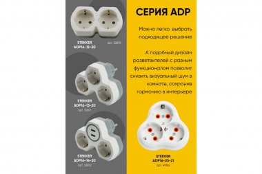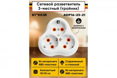 Сетевой разветвитель STEKKER ADP16-23-21 (ADP16-23-21) с заземлением, количество присоединяемых устройств 3, номинальное напряжение 250В, номинальный ток 16А, материал ABS пластик, латунь, нержавеющая сталь, цвет белый, IP20