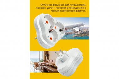 Feron 49165 Сетевой разветвитель STEKKER ADP16-23-21 (ADP16-23-21) с заземлением