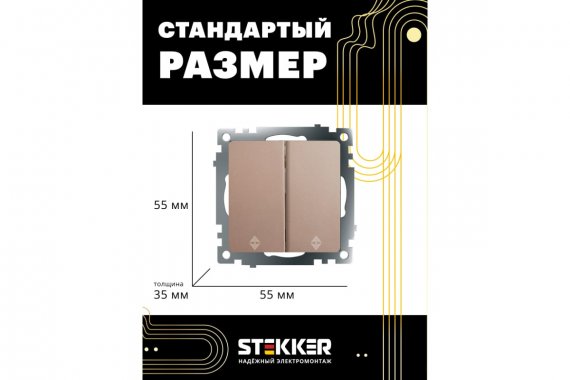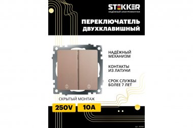 Выключатель двухклавишный STEKKER GLS10-7107-02, серия Катрин тип установки - скрытый, размер изделия 55*55*35мм., цвет шампань, материал изделия поликарбонат, латунь. Номинальное напряжение 250 , номинальный ток 10А, IP20
