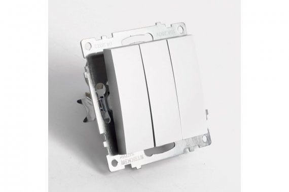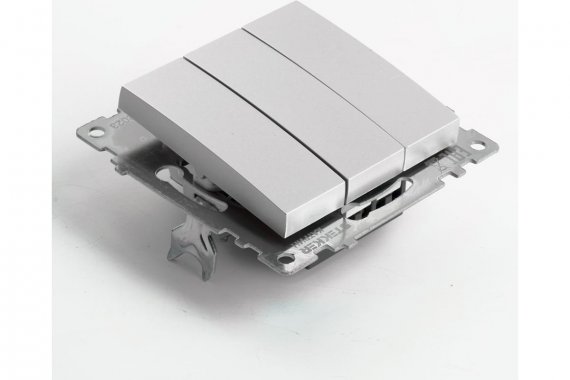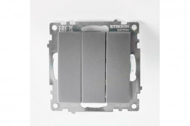Выключатель трехклавишный STEKKER GLS10-7108-03, серия Катрин тип установки - скрытый, размер изделия 55*55*35мм., цвет серебро, материал изделия поликарбонат, латунь. Номинальное напряжение 250 , номинальный ток 10А, IP20