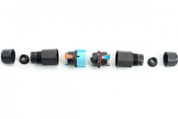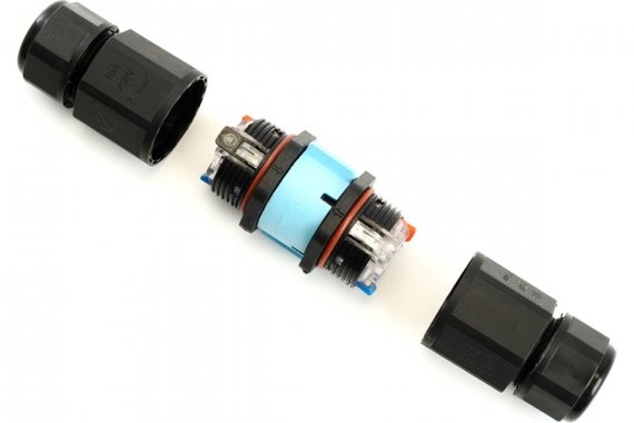 Предназначен для соединения трех кабелей, расположенных на улице, а также в местах с повышенной влажностью. Обеспечивает герметичность соединения IP68. Возможно погружение в воду до 4 метров, не более 72 часов, при условии напряжения не выше 24V. Температура эксплуатации от -40 до +85°С. Максимальный диаметр кабеля 9 мм.