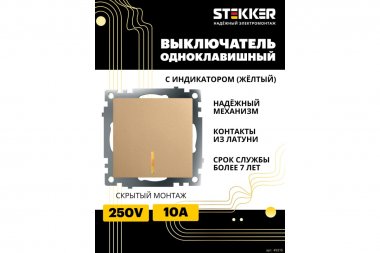 Выключатель одноклавишный STEKKER GLS10-7101-08, серия Катрин тип установки - скрытый, размер изделия 55*55*35мм., цвет золото, материал изделия поликарбонат, латунь. Номинальное напряжение 250 , номинальный ток 10А, IP20