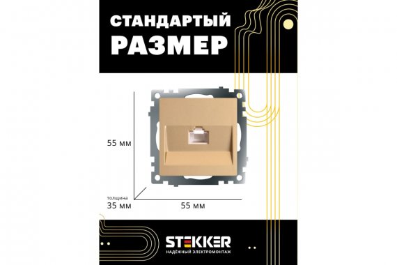 Розетка STEKKER GLS00-7107-08 на 1 гнездо, -. Материал: поликарбонат, латунь, цвет золото, размер 55*55*35мм. Номинальное напряжение -, номинальный ток 1A, диапазон рабочих температур 0..+35°C, IP20