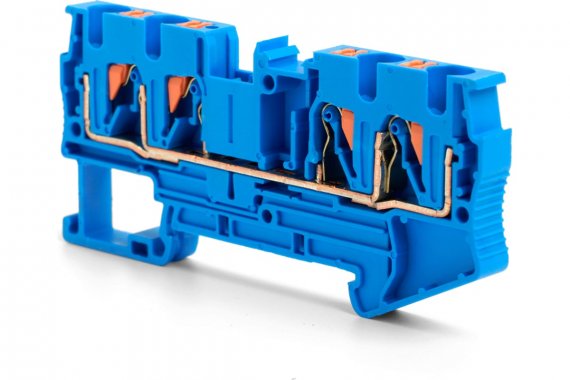 LD574-2-40 ЗНИ Зажим самозажимной, 4-проводной проходной 4.0 мм? (JXB PT 4), синий