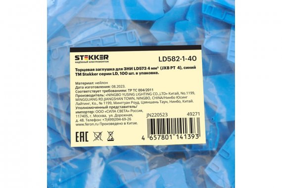 LD582-1-40 Торцевая заглушка для ЗНИ LD573 4 мм? (JXB PT 4), синий