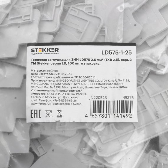 LD575-1-25 Торцевая заглушка для ЗНИ LD575 2,5 мм? (JXB PT 2,5), серый