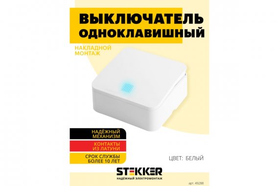 Выключатели одноклавишный STEKKER MSW10-11-20-01 , серия София, с подсветкой (синий), тип установки - открытый, размер изделия 65*65*35мм., цвет белый, материал изделия ABS пластик. Номинальное напряжение 250 , номинальный ток 10А, IP20