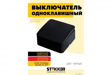 Выключатели одноклавишный STEKKER MSW10-10-02, серия София тип установки - открытый, размер изделия 65*65*35мм., цвет черный, материал изделия ABS пластик. Номинальное напряжение 250 , номинальный ток 10А, IP20