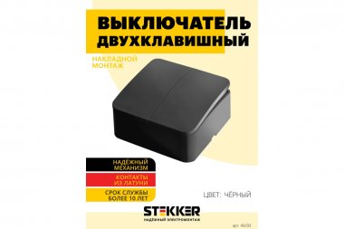 Выключатели двухклавишный STEKKER MSW10-20-02 , серия София тип установки - открытый, размер изделия 65*65*35мм., цвет черный, материал изделия ABS пластик. Номинальное напряжение 250 , номинальный ток 10А, IP20