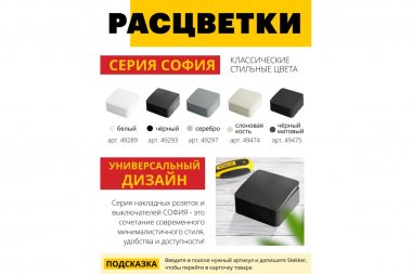 Серия София Stekker открытой установки выполнена в современном дизайне. Серия София имеет большой ассортимент изделий, который позволяет использовать их в самых различных проектах. Широкий выбор из 5 цветов позволит подобрать цветовые сочетание для любого интерьера. Не горючий внутренний блок и устойчивый к УФ излучению материал исполнения обеспечат безопасность и долговечность использования.