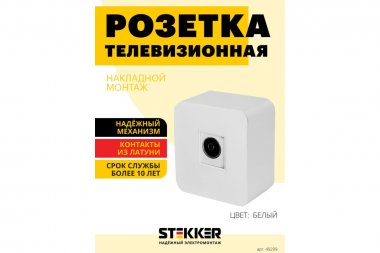 Розетка STEKKER MST00-10-01 на 1 гнездо, без заземления. Материал: ABS пластик, цвет белый, размер 65*65*35мм. Номинальное напряжение -, номинальный ток -, диапазон рабочих температур 0..+35°C, IP20