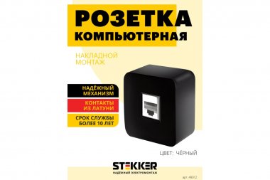 Розетка STEKKER MST00-20-02 на 1 гнездо, без заземления. Материал: ABS пластик, цвет черный, размер 65*65*35мм. Номинальное напряжение -, номинальный ток -, диапазон рабочих температур 0..+35°C, IP20
