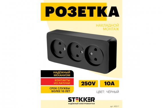 Розетка STEKKER MST10-13-02 на 3 гнездо, без заземления. Материал: ABS пластик, цвет черный, размер 160*60*30мм. Номинальное напряжение 230, номинальный ток 10А, диапазон рабочих температур 0..+35°C, IP20