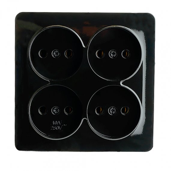 Розетка STEKKER MST10-14S-02 на 4 гнездо, без заземления. Материал: ABS пластик, цвет черный, размер 102*102*28мм. Номинальное напряжение 250, номинальный ток 10А, диапазон рабочих температур 0..+35°C, IP20
