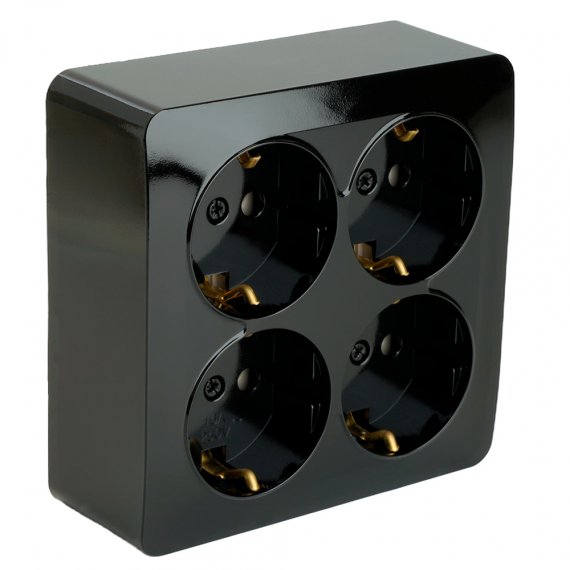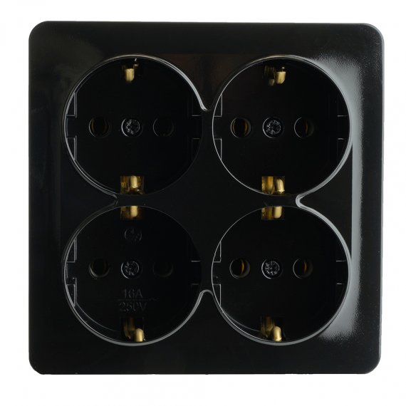 Розетка STEKKER MST16-14S-02 на 4 гнездо, с заземлением. Материал: ABS пластик, цвет черный, размер 102*102*40мм. Номинальное напряжение 250, номинальный ток 16А, диапазон рабочих температур 0..+35°C, IP20