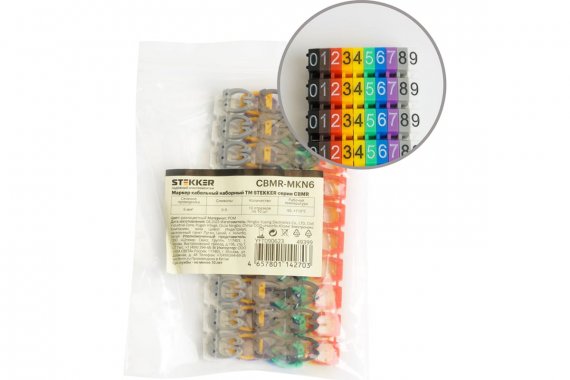 Кабель маркер МКН электромонтажный STEKKER CBMR-MKN6 , , разноцветный, материал - полиформальдегид POM, размер 1*1мм, максимальный диаметр пучка - мм, нагрузка - кг, диапазон рабочих температур -50..+110°C, рекомендуемая температура хранениня