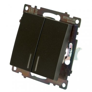 Выключатели двухклавишный STEKKER GLS10-7102-06, серия Катрин тип установки - скрытый, размер изделия 73*73*35мм., цвет графит, материал изделия поликарбонат, латунь. Номинальное напряжение 250 , номинальный ток 10А, IP20