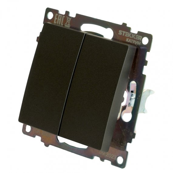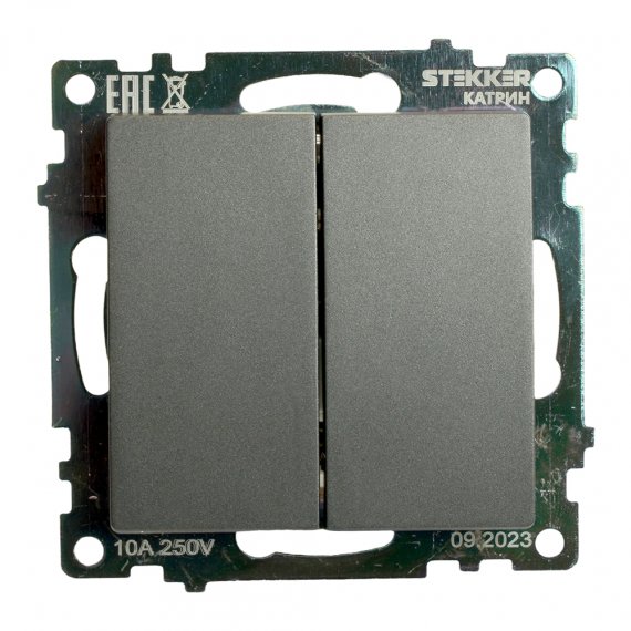 Выключатели двухклавишный STEKKER GLS10-7107-06, серия Катрин тип установки - скрытый, размер изделия 73*73*35мм., цвет графит, материал изделия поликарбонат, латунь. Номинальное напряжение 250 , номинальный ток 10А, IP20