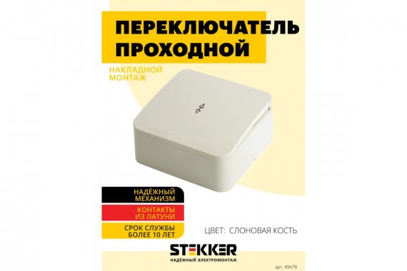 Выключатели одноклавишный STEKKER MSW10-12-04 , серия София тип установки - открытый, размер изделия 65*65*35мм., цвет слоновая кость, материал изделия ABS пластик. Номинальное напряжение 250 , номинальный ток 10А, IP20