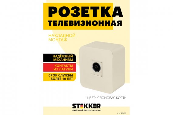 Розетка STEKKER MST00-10-04 на 1 гнездо, без заземления. Материал: ABS пластик, цвет слоновая кость, размер 65*65*35мм. Номинальное напряжение -, номинальный ток -, диапазон рабочих температур 0..+35°C, IP20