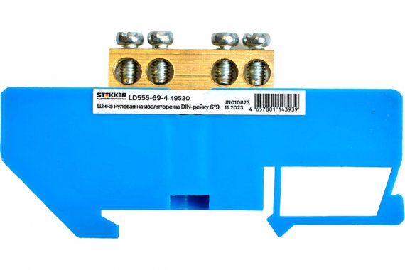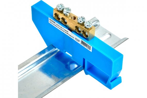 LD555-69-4 Шина "N" на изоляторе 6*9 на DIN-рейку 4 вывода, синий