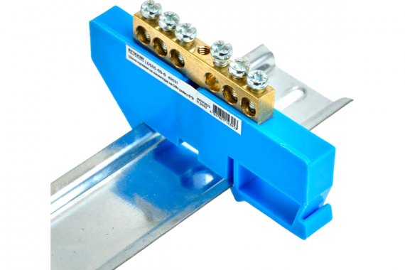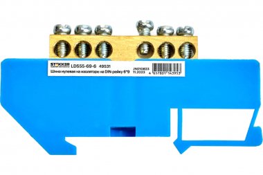 LD555-69-6 Шина "N" на изоляторе 6*9 на DIN-рейку 6 выводов, синий