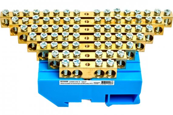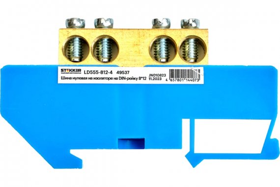 LD555-812- 4 Шина "N" на изоляторе 8*12 на DIN-рейку 4 вывода, синий