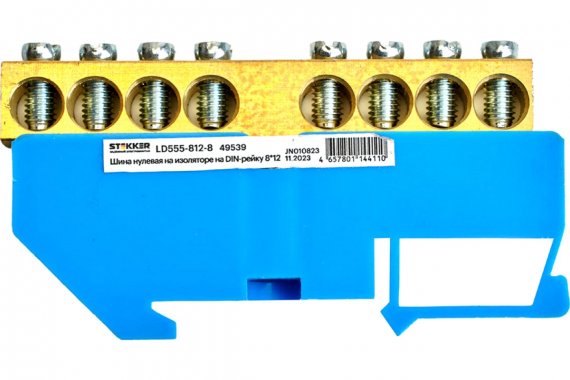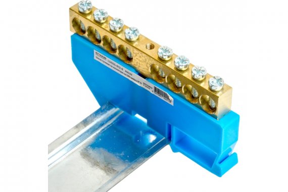 LD555-812- 8 Шина "N" на изоляторе 8*12 на DIN-рейку 8 выводов, синий