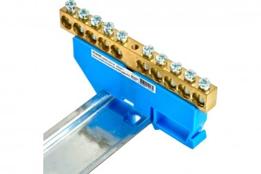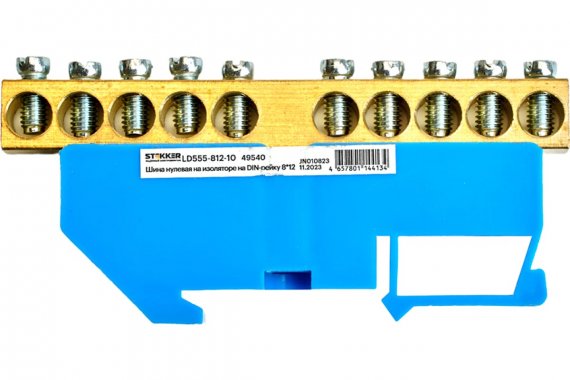 LD555-812-10 Шина "N" на изоляторе 8*12 на DIN-рейку 10 выводов, синий
