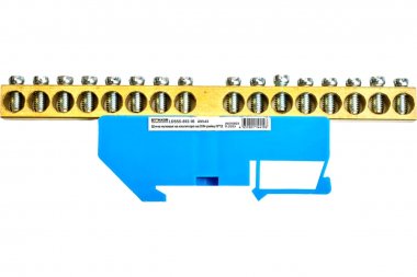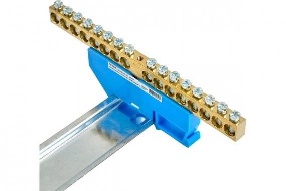 LD555-812-16 Шина "N" на изоляторе 8*12 на DIN-рейку 16 выводов, синий
