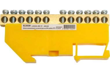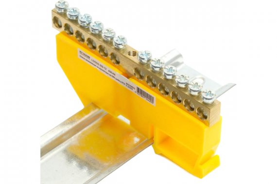 LD555-69-12 Шина "PE" на изоляторе 6*9на DIN-рейку 12 выводов, желтый
