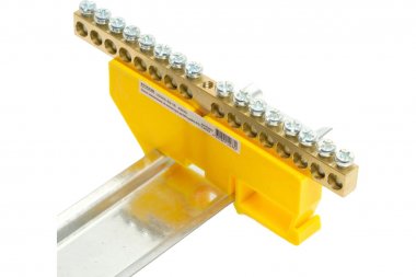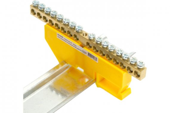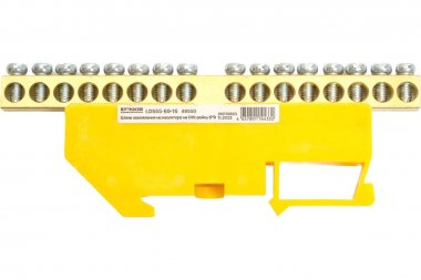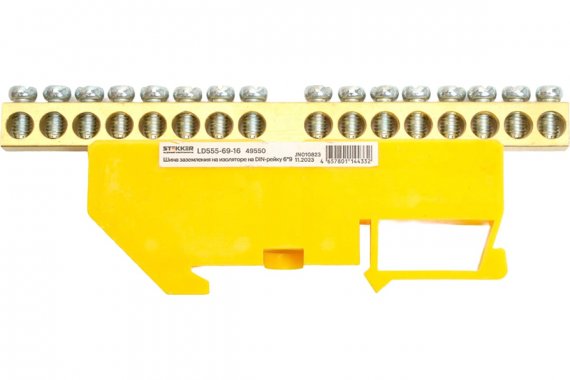 LD555-69-16 Шина "PE" на изоляторе 6*9 на DIN-рейку 16 выводов, желтый