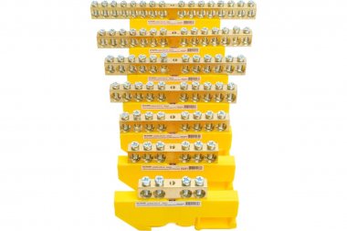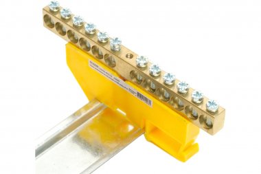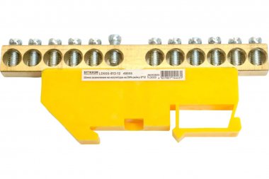 LD555-812-12 Шина "PE" на изоляторе 8*12 на DIN-рейку 12 выводов, желтый