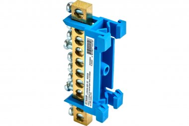 LD556-69-10 Шина "N" на изоляторе 6*9 тип "стойка" на DIN-рейку 10 выводов, синий