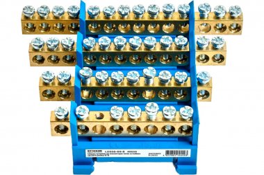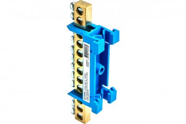LD556-69-12 Шина "N" на изоляторе 6*9 тип "стойка" на DIN-рейку 12 выводов, синий