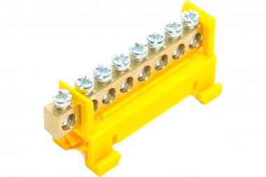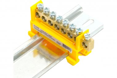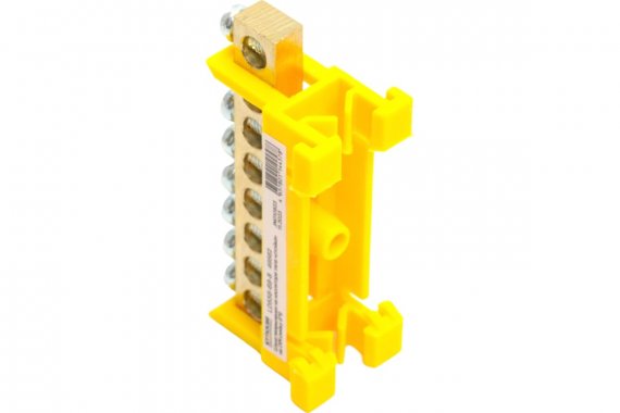 LD556-69- 8 Шина "PE" на изоляторе 6*9 тип "стойка" на DIN-рейку 8 выводов, желтый