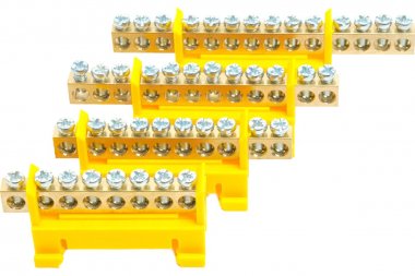 LD556-69-12 Шина "PE" на изоляторе 6*9 тип "стойка" на DIN-рейку 12 выводов, желтый
