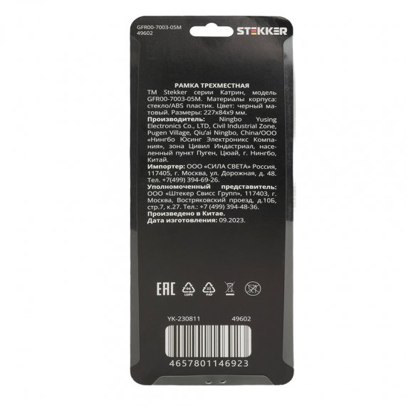 Рамка STEKKER GFR00-7003-05М на гнездо, , . Материал: Стекло/ABS пластик, цвет черный матовый, размер 227*84*9мм. Номинальное напряжение , номинальный ток , диапазон рабочих температур ,