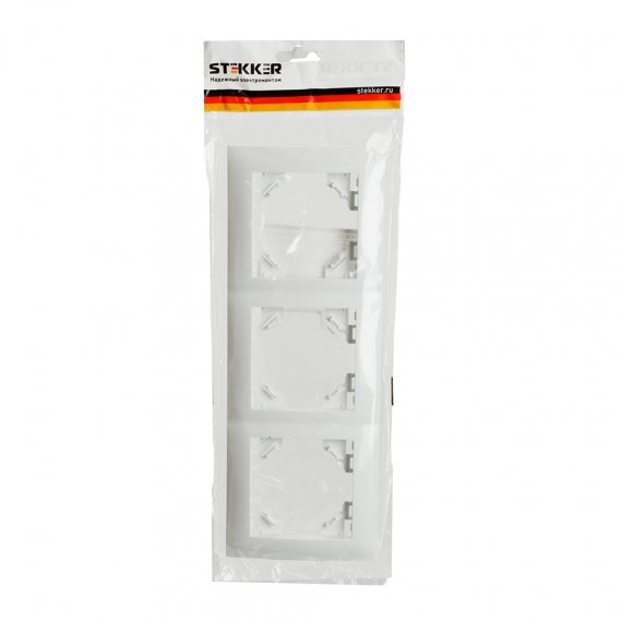 Рамка STEKKER PFR00-9013-01 (расстояние между монтажными отверстиями: по гориз. - 200мм, по вертик.- 45мм) на гнездо, , . Материал: ABS пластик, цвет белый, размер 225*83*11мм. Номинальное напряжение , номинальный ток , диапазон рабочих температур ,