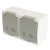 Розетка STEKKER PST16-22-54 (расстояние между монтажн. отвер-ми: по гориз. - 113мм, по вертик.- 65мм) на 2 гнездо, с крышкой, с заземлением. Материал: Полипропилен, ABS пластик, латунь, цвет белый+серый, размер 124*75*50мм. Номинальное напряжение 250, номинальный ток 16А, диапазон рабочих температур 0..+35°C, IP54