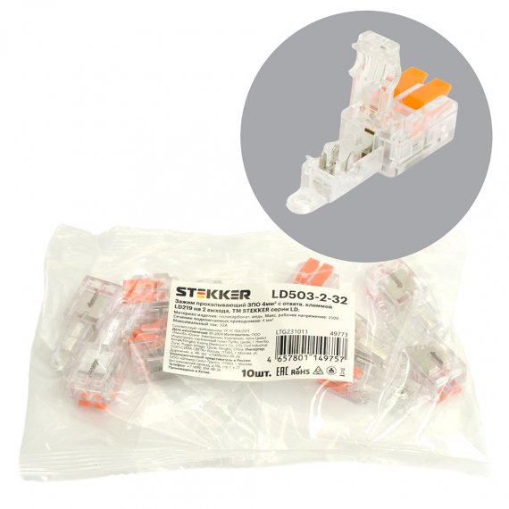 LD503-2-32 Зажим прокалывающий ЗПО 4мм2 c ответв.клеммой LD219 на 2 выход, (упаковка 10 шт)