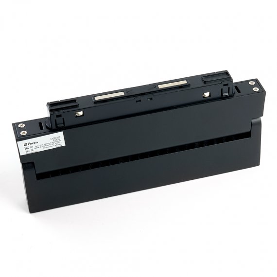 Светильник трековый на шинопровод, - (ДПО) FERON MGN301, 12W, 2700К (белый теплый), 48V, 1080Lm, цвет черный, корпус алюминий, рассеиватель поликарбонат,/?90°, 220*22*102 мм